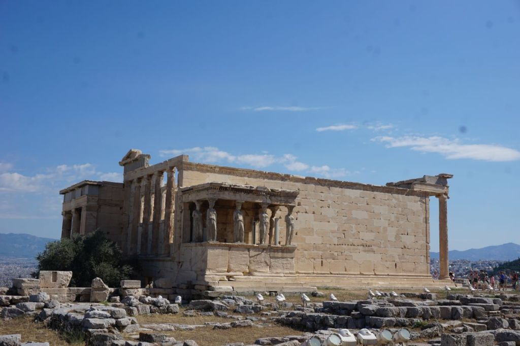 Nos volvemos a levantar para las 8:30, desayunamos y para las 9:30 llegamos a la Acrópolis. Compramos bastante rápido las entradas que cuestan 20€ por persona, y entramos también bastante rápido. Hacemos caso al guía de ayer y al subir la primera cuesta miramos hacia atrás y vemos el estrecho de Salamina, lugar en el que se defendió la democracia frente a los persas. Estamos unas 2 horas y media visitando la Acrópolis. Es espectacular ver el Partenón, las cariátides, en general todo el complejo.