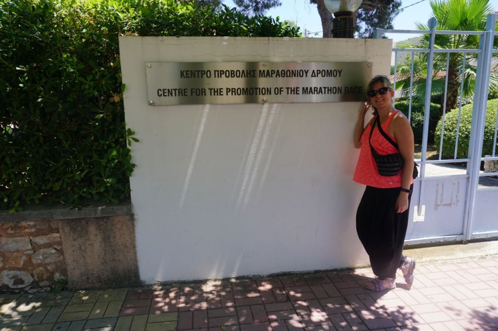 Hoy nos toca abandonar Atenas y empezar una nueva etapa del viaje por la Grecia continental. Dejamos el hotel sobre las 9 de la mañana y cogemos nuevamente la linea 3 del metro dirección al aeropuerto para recoger el coche de alquiler en Goldcar. En el aeropuerto no sabemos dónde está la oficina y tras varias preguntas nos enteramos que no está dentro del aeropuerto y que pasa un shuttle a buscarnos, pero no sabemos a que hora. Finalmente vemos una mini van en la que pone Goldcar que nos lleva hasta la oficina. Solo hay dos personas atendiendo y nos cuesta un mundo que nos den el coche. Tiene 70440 kms. Al final del viaje veremos cuantos kilómetros hemos recorrido! A las 12 salimos con el coche y se nos ha ocurrido ir a Marathón a sacarnos una foto con el nombre del pueblo. Son 42 km de carreteras secundarias y tardamos más de una hora. Llegamos al museo y en la entrada hay dos corredores y nos sacamos una foto.