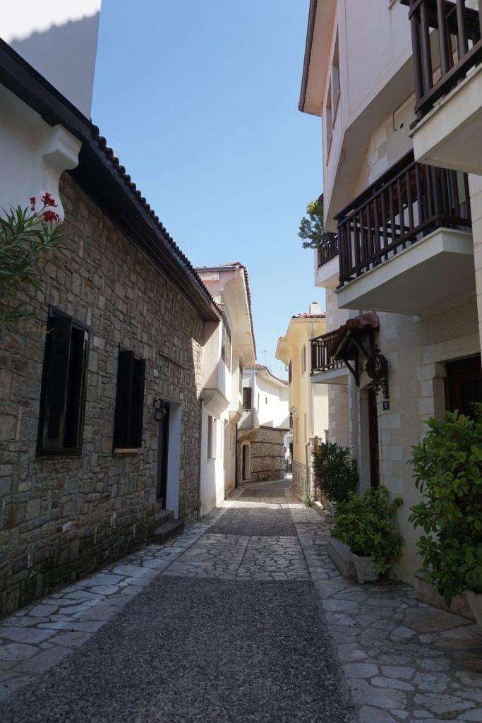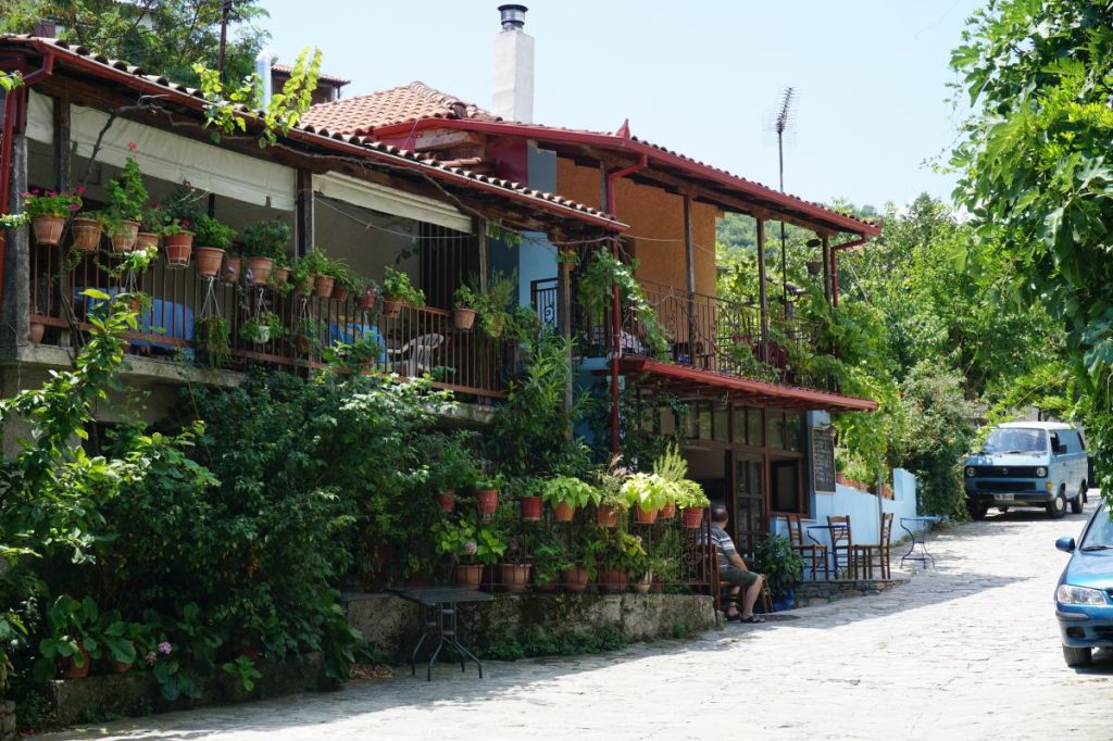 De ahí fuimos a Ambelakia un pueblo muy agradable, donde nos tomamos una cerveza en la plaza del pueblo. El camarero era un chico joven y nos pregunta si nos gusta el pueblo, nosotros le decimos que sí, que es un sitio muy tranquilo. Él comenta que a veces hasta demasiado tranquilo… no vive mucha gente, y los que viven son mayores. El pueblo tiene varias mansiones y está todo empedrado. Damos un paseo muy agradable entre olores de potaje típico de los pueblos.