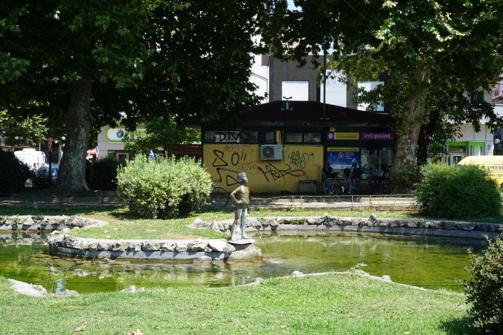 De ahí fuimos a Trikala. Nada más aparcar encontramos un sitio para comer un gyros pita. Dimos una vuelta por el pueblo, vimos unas plazas, el fuerte, que tenía la torre en obras, y además estaban cerrando, y el barrio otomano. Es un pueblo muy agradable.