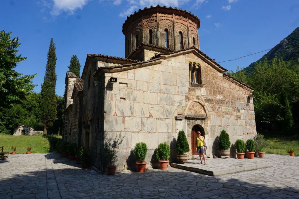 Dejamos Trikala y nos vamos a Pyli a ver el monasterio de Porta Panagia. Al entrar salió un chico que es su cuidador. Por 2€ persona nos enseñaba la iglesia por dentro y nos la explicaba. Es pequeña, pero bonita. Ha perdido gran parte de las pinturas de las paredes, y antes era un complejo mayor con varios edificios, pero tras varios conflictos bélicos que se sucedieron en la zona, solo se mantiene el edificio actual.