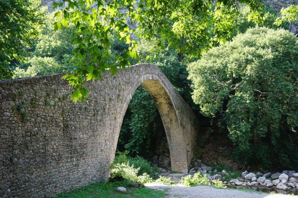 El chico de Porta Panagia nos recomienda ir a ver el puente de Visarion, que esta cerca. Es un puente de piedra parecido al de Cangas de Onis, lo cruzamos, y a la vuelta echamos una cerveza en una terraza con vistas al puente.