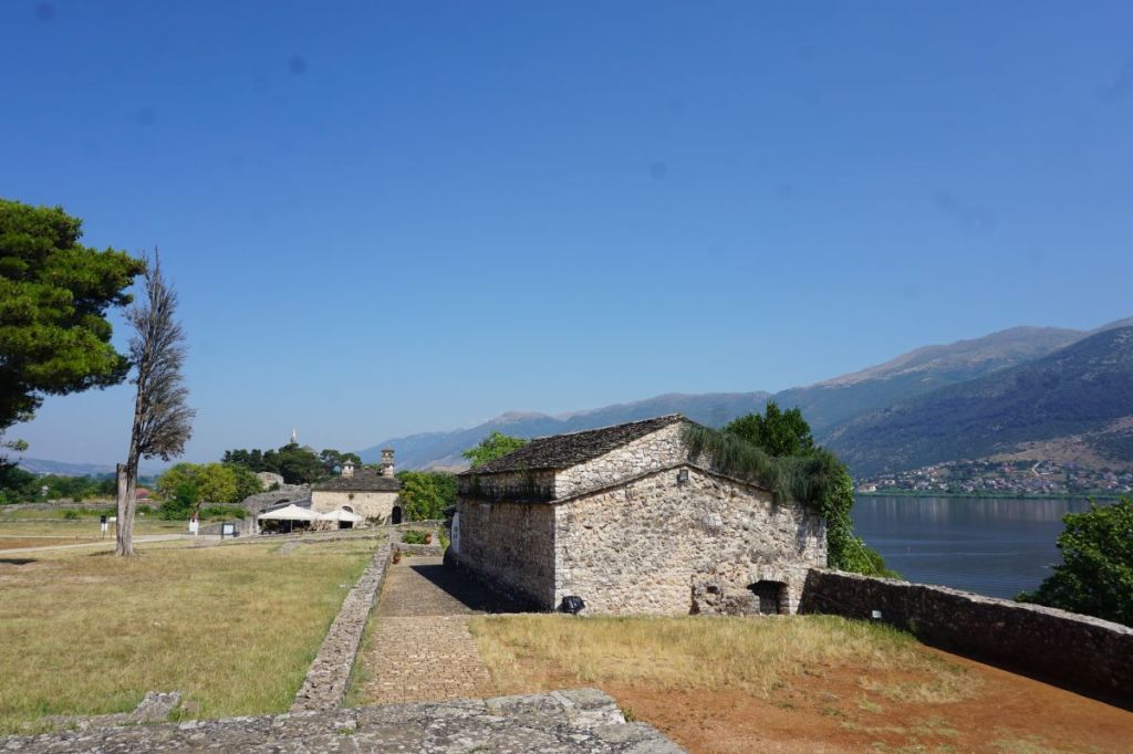 Sobre las 8:00 nos levantamos y tomamos nuestro último desayuno buffet. Nos despedimos de Meteora. Vamos hasta el pueblo de Ioanina, que está a una hora y pico de Kalambaka. Tiene un castillo amurallado y un lago. El castillo es curioso porque dentro de las murallas hay casas modernas donde vive la gente. No hay que pagar entrada. Visitamos la parte de las ruinas, que tienen vistas al lago. Sitio muy tranquilo. Tiene un bar con terraza donde merece la pena hacer una parada.