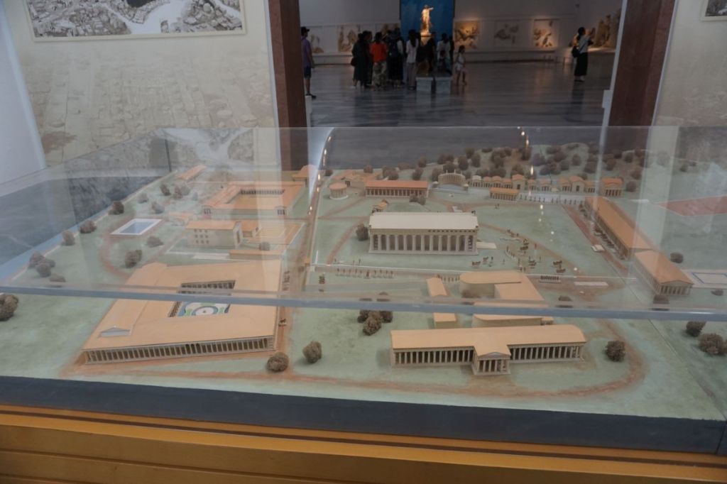 Son las 12:30 y nos vamos a echar una cerveza al pueblo para hacer tiempo hasta las 13:00 y recoger la ropa. Justo cuando salimos llegan miles de personas procedentes de uno o más cruceros, una marea de gente brutal. A la 13:00 recogemos la ropa y con el coche nos acercamos al museo de los juegos Olímpicos que esta cerca del yacimiento. En él se explican como eran los juegos olímpicos en la antigüedad.