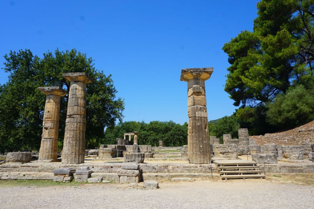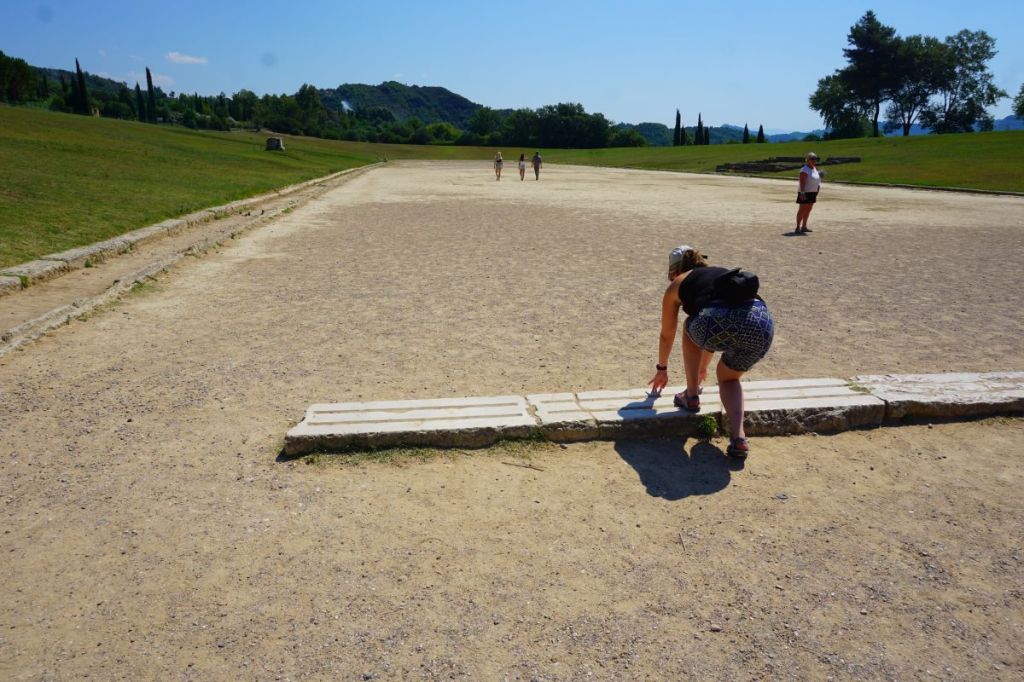 En el yacimiento vemos el gimnasio, el templo de Zeus donde se guardaba la estatua de Zeus (una de las 7 maravillas del mundo antiguo ya desaparecida), el taller de Fidias donde se hizo dicha estatua, el templo de Hera, dónde se enciende hoy en día el fuego de la antorcha olímpica, y el estadio donde echamos una carrera. En total unas tres horas y pico para recorrer todo el recinto.