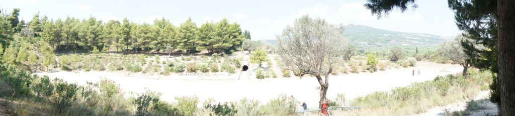 De ahí nos vamos al yacimiento de la Antigua Corinto. Vemos el museo, el templo de Zeus y el resto de las ruinas. Tardamos unas 2 horas en total. Al salir comemos en un bar cercano: Greek salad y souvlaki de pork. Después de comer nos acercamos a las ruinas para ver el teatro que antes no lo vimos porque estaba fuera del recinto. No queda más que 4 piedras y cuesta imaginarse que es un teatro.
