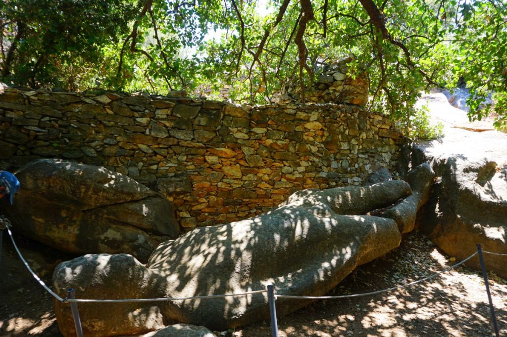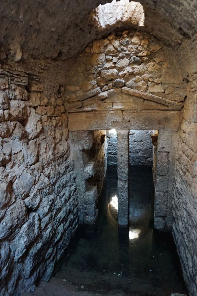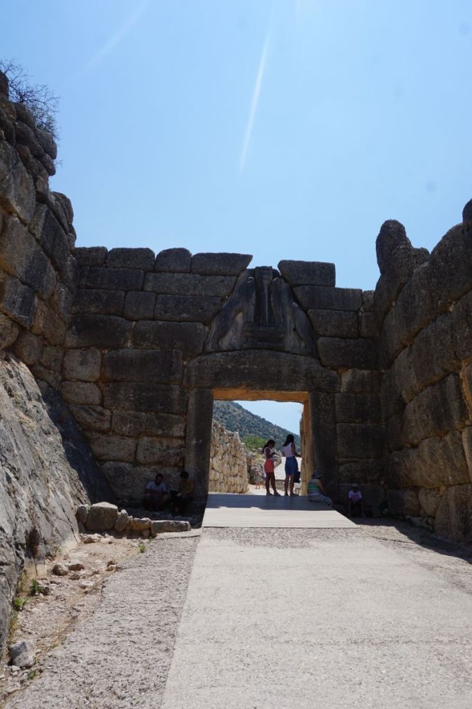 Ahora toca ir a Micenas dónde vemos un yacimiento de un poblado de la época. La entrada es 12€. Primero vemos el museo pero no hay maqueta. En la entrada hay un arco con dos leones. No están muy conservadas las ruinas y hay que echar mucha imaginación. Hay un depósito de agua al que accedemos por un pasadizo bajando unas escaleras un poco resbalosas y sin luz. Usamos la linterna del móvil. Al final había un pozo de agua. Tardamos unas dos horas en ver el yacimiento y ya es la hora de comer.