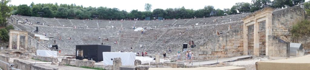 Nos vamos a Epidauro a ver el teatro. Cuesta 12€ y estuvimos unas 2 horas viéndolo con tranquilidad. Esta muy bien conservado. Todavía lo usan para conciertos y teatros. Tiene una gran acústica, de hecho hay un punto exacto en el escenario donde la gente da palmadas o tira un moneda y se oye perfectamente por todo el teatro. También hay un yacimiento que vemos.