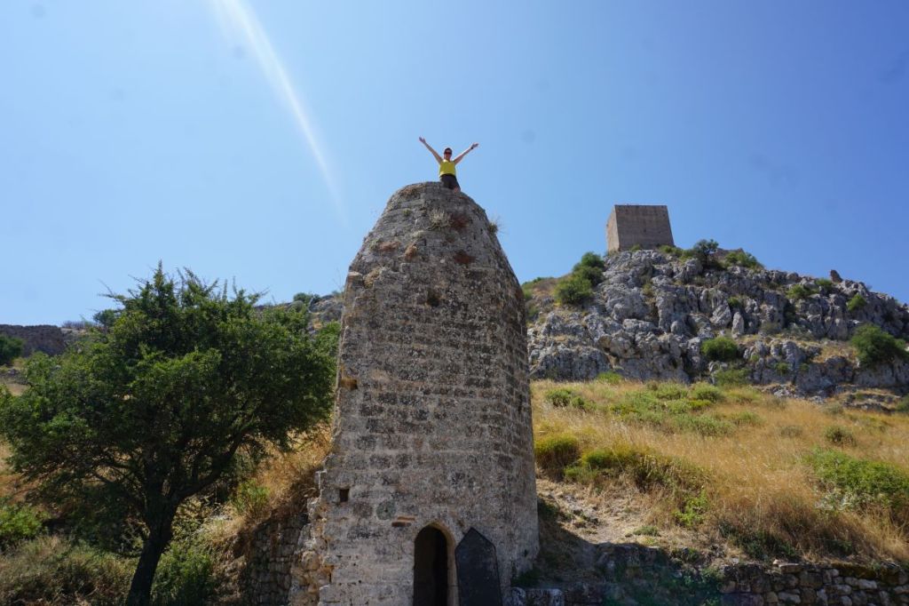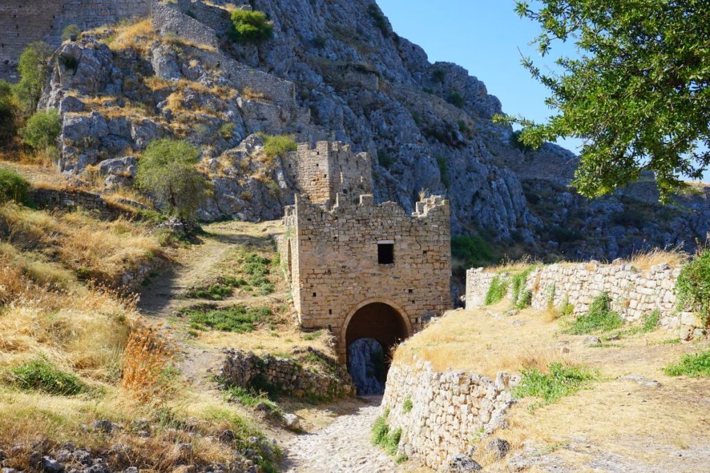 Desayunamos en el apartamento de Corinto tostadas con mantequilla y mermelada, pastas y café. Hoy visitamos Acrocorinto, un castillo que está en una colina. Se recomienda ir con calzado cerrado. No hay que pagar entrada y lo exploramos a fondo. Vimos la fuente a la que iba Pegaso a beber que está reconstruida. Las vistas son increibles. Se puede entrar a la torre principal que también está recontruida y puedes ver el paisaje desde arriba. En total tardamos unas 2h más o menos en visitarlo.
