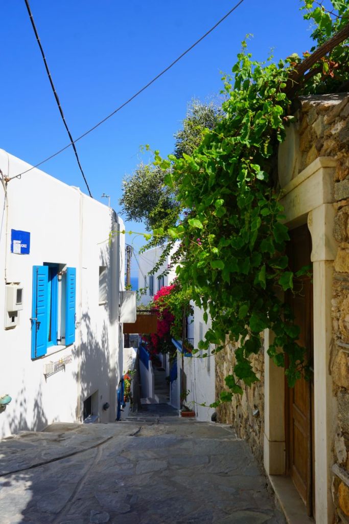 Siguiente parada Halki, antigua capital de naxos. Damos una vuelta por el pueblo y paramos en un bar a hidratarnos con cerveza y agua, ya que hace un calor infernal. Comemos en el restaurante de la plaza: Halki salad y un estofado de cerdo. Nos vamos para el hotel, que está ubicado en Agia Ana y se llama Plaza Studios. Tiene párking y está en primera línea de playa. Vamos a la playa un rato. Nos da pereza salir a cenar así que vamos a un súper que está al lado y compramos agua y frutas para cenar.