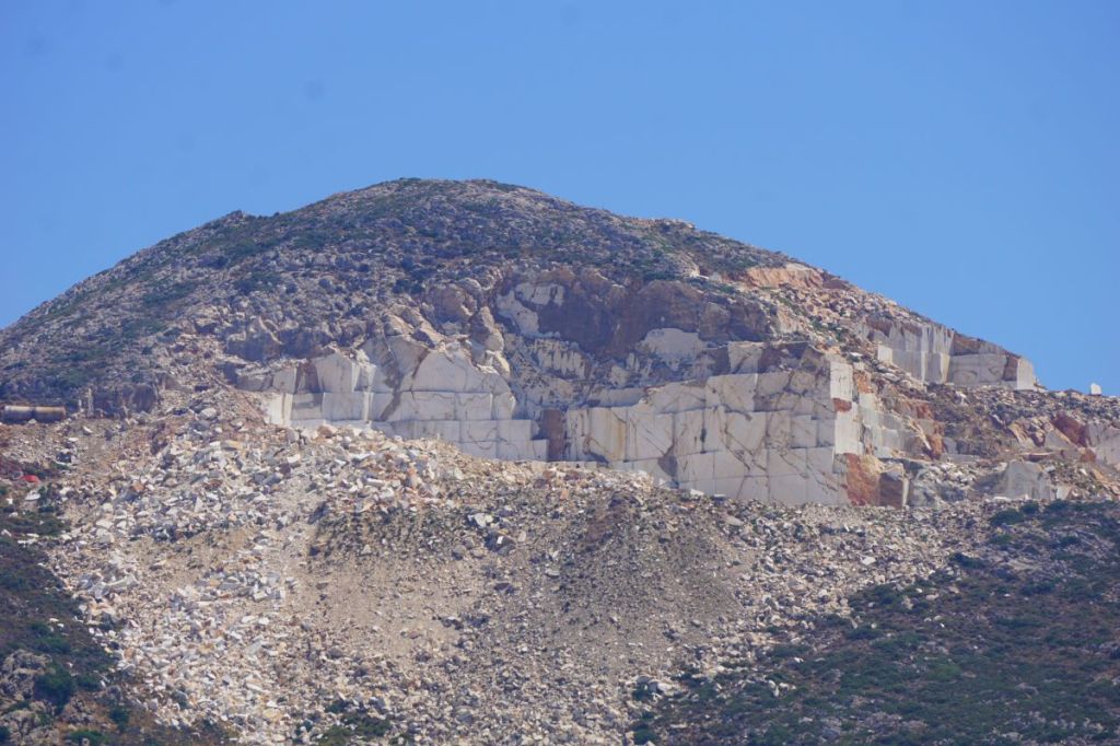 Dejamos la capital y nos vamos a ver las Ruinas de Dos Kouros. Son dos estatuas que están tumbadas en el suelo. A lo lejos vemos la Cantera de Mármol de dónde sale unos de los mejores mármoles del país.