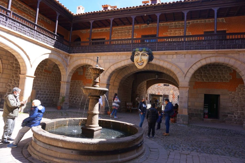 Volvemos al hotel paseando poco a poco, ahora nos toca subir cuestas y la altitud se deja notar. Nos dan las habitaciones y nos damos una ducha para espabilar. Una compañera se queda durmiendo en el hotel porque le afecta bastante el mal de altura. El otro compañero y yo nos vamos otra vez a callejear. Vistamos el mercado de las brujas, vemos el museo de la coca que tiene una entrada muy bonita con unos grabados en madera un tanto curiosos, bueno más que curiosos un poco pornos. Nos cuenta el chico del museo que el dueño de la casa estuvo en la India y le gustaba mucho la diosa del amor y por eso la construyó así. El museo es pequeño y además cuenta con zona de bar, nos ofrece que si queremos tomar algo y tomamos una cerveza con coca. Es dulzona y tiene un cierto color verdoso. Vemos un poco el museo y nos comimos un caramelo de coca. A mi amigo no le gusta pero a mí sí, aunque te deja la lengua un poco dormida.