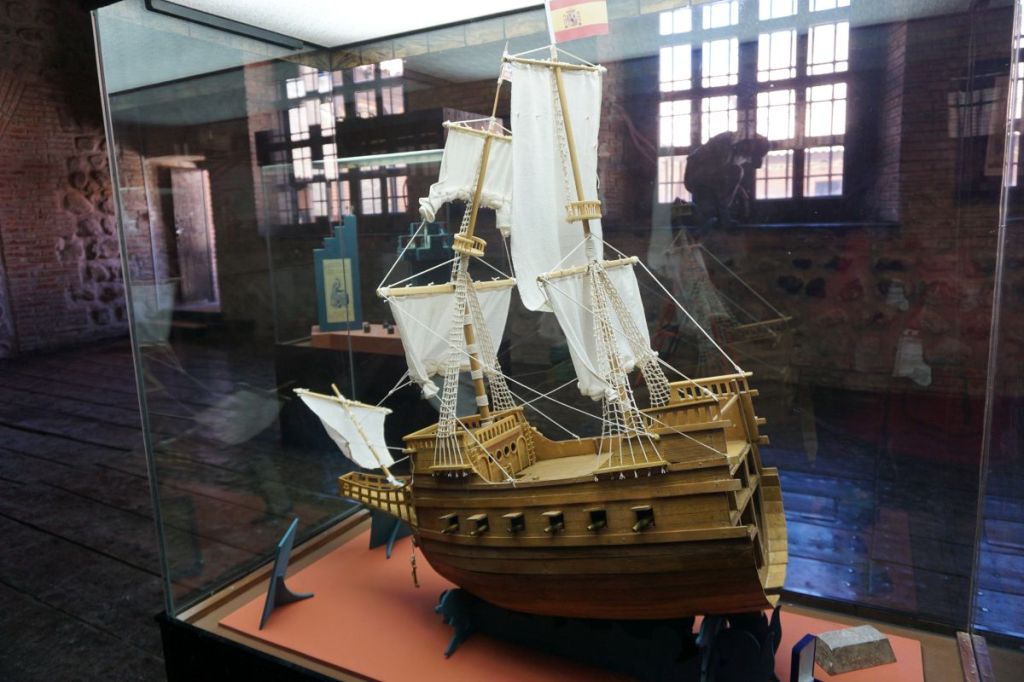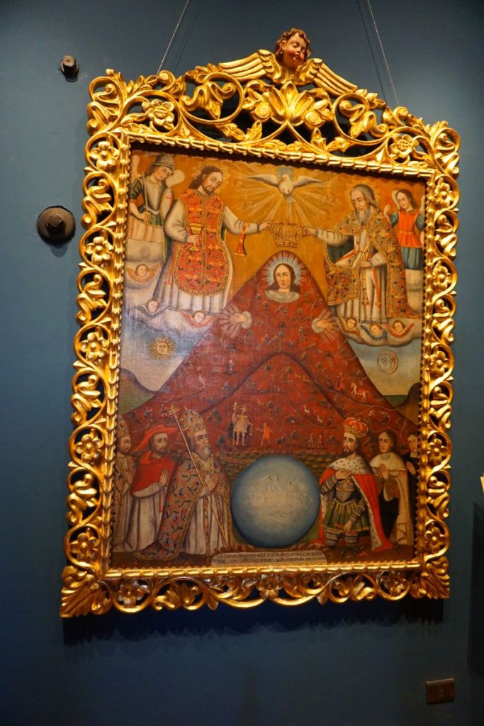 Primero vamos a la Casa de la Moneda, la entrada es de 40 bolívares (incluida en el precio del tour). Es una visita guiada que empieza a las 10:30. Esta fue la segunda casa de la moneda de Potosí, pero en la actualidad no existe ninguna en el país y los bolívares son creados en otros países. Primero vemos una locomotora que se usaba para transportar la plata. Se visitan algunas salas con cuadros, de los cuales el más relevante es el de la Virgen del Cerro. Es una representación Mariana que además representa el cerro de Potosí y cuenta la leyenda de cómo se descubrió la plata. Se ve también una colección de monedas de distintas épocas y una réplica de un barco español, Nuestra Señora de Atocha, que llevaba la plata a España y que se hundió cerca de Florida. Se encontró años después y el tesoro se lo quedaron en Florida.