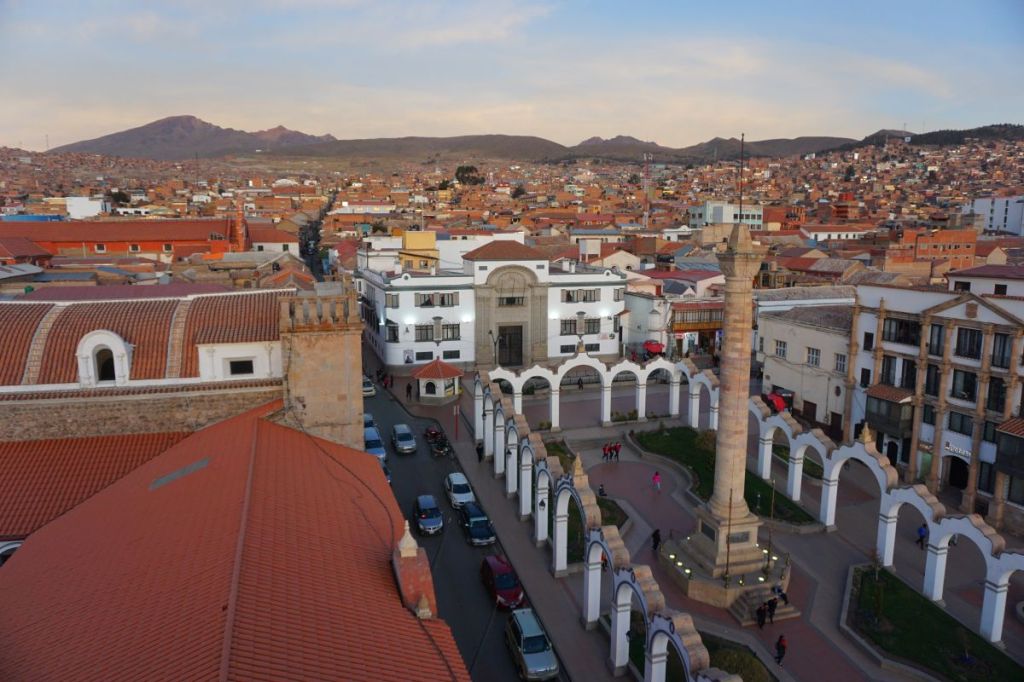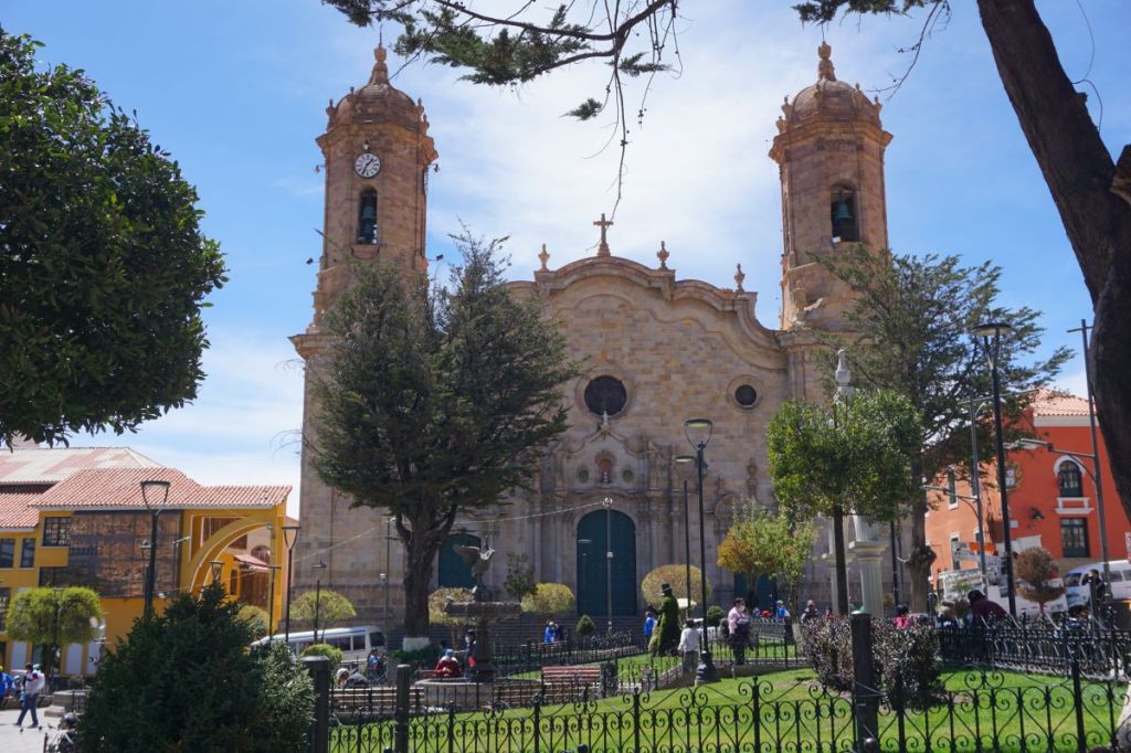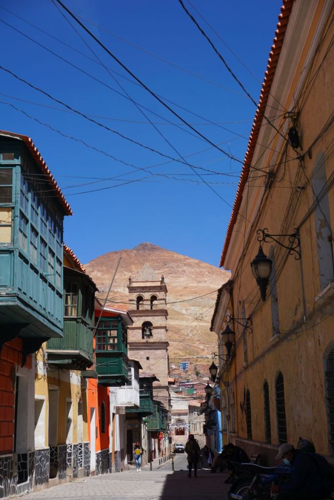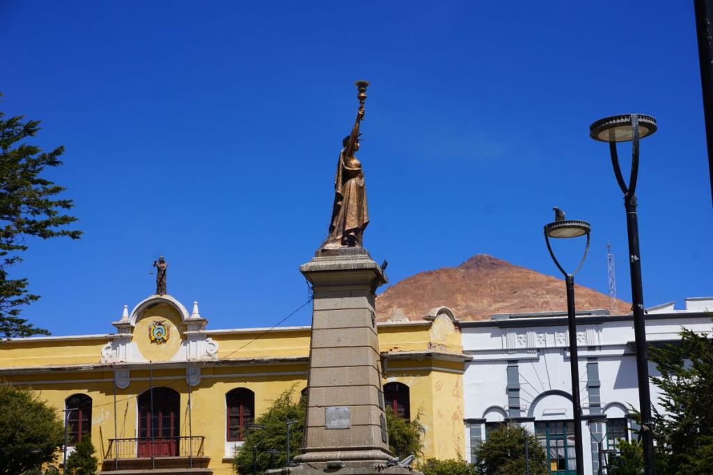 La ciudad es muy colonial. Hay edificios grandes que fueron de españoles que se marcharon, se quedaron vacíos y ahora son del gobierno y los ha convertido en escuelas. Visitamos la Iglesia de San Francisco, donde vemos una exposición de plata, porque ese mismo día celebran una fiesta. Esa plata pertenece a familias de Potosí descendientes de los españoles. Luego vamos a la Plaza 6 de Agosto donde está la antigua casa de la moneda, que ahora es un edificio del gobierno. En esta plaza está también la Catedral de Santiago y el Ayuntamiento. En el centro de la plaza tienen una estatua de la libertad, una réplica que les regaló Francia. Visitamos el mercado y la Iglesia de San Lorenzo que está detrás. Vemos el barrio de los andaluces, la Calle del Trasero, donde se dice estaban los prostíbulos, y el barrio de los vascos. Terminamos casi a las 15:00.