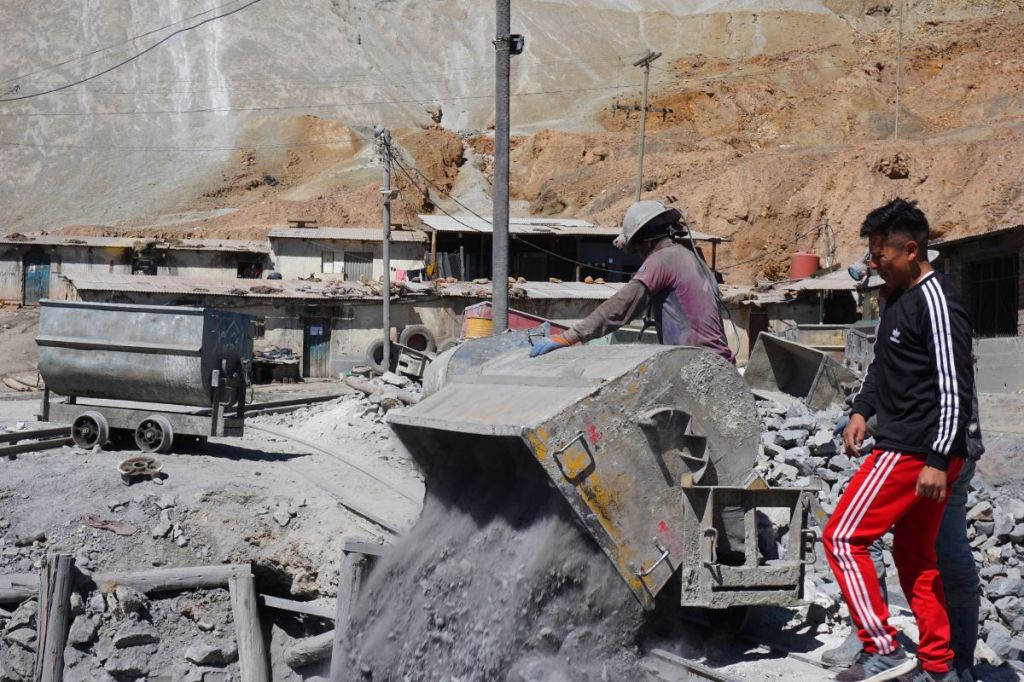 De aquí ya nos vamos para la mina. Empezaron a explotarse en el año 1500. Trajeron esclavos africanos para ello, pero no se adaptaron bien ni a la altura ni al clima, por lo que se los llevaron a las Yungas, una zona cercana a la Paz que es más tropical, y hoy en día sigue habiendo allí una comunidad africana. Así que las minas fueron explotadas principalmente por indígenas. Fuera de las minas hay unos edificios que utilizan los mineros para cambiarse o descansar. También se ven diferentes sectores donde cada grupo de trabajo deposita el contenido de las vagonetas. Una persona hace una selección de ese material antes de que se lo lleven en un camión a analizar en un laboratorio y ponerle precio. Extraen principalmente estaño, zinc y algo de plata. Ahora funciona como una cooperativa formada por un grupo de gente y luego tienen mineros asalariados. Trabajan unas 15.000 personas.