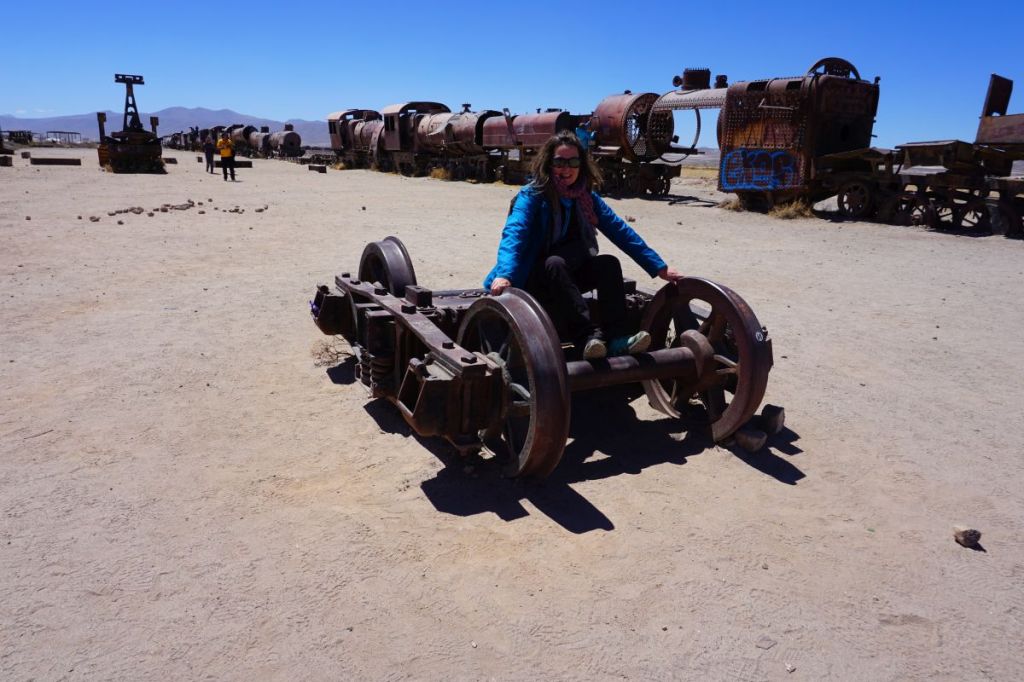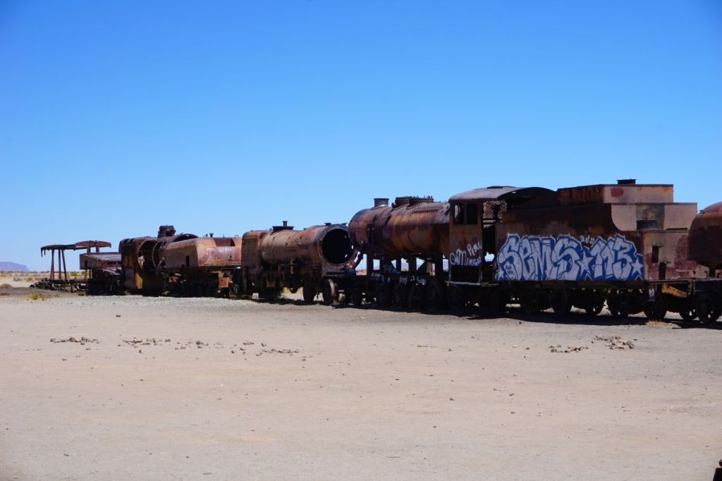 La primera parada la hacemos muy cerca de Uyuni, en el Cementerio de Trenes. Son un conjunto de trenes abandonados que en su día se usaron para transportar personas y mercancías.