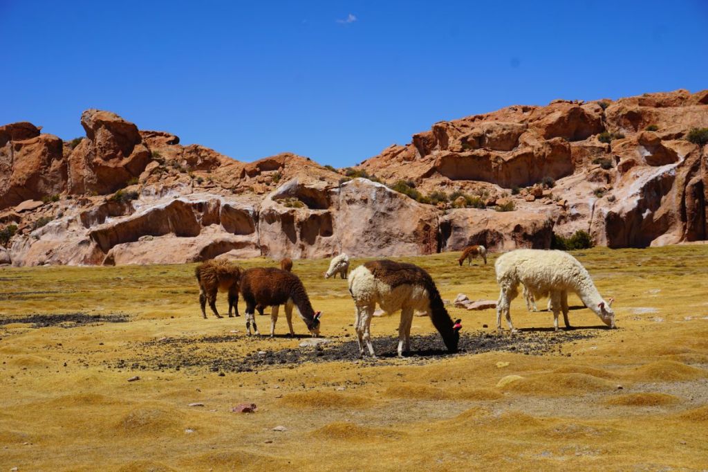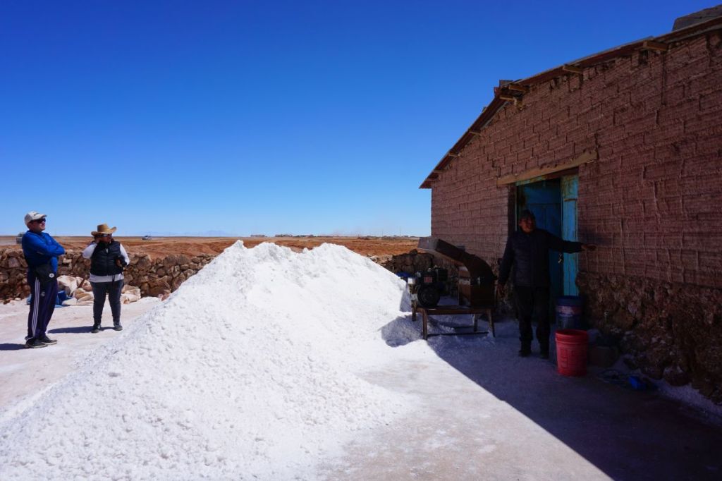 Posteriormente vamos al pueblo de Colchani que se encuentra justo a la entrada del Salar y dónde la gran mayoría de sus habitantes se dedican a la producción de sal con técnicas manuales. Visitamos una casa donde se produce la sal y nos explican el procedimiento. Tienen una tienda de artesanía y unas figuras realizadas en sal.