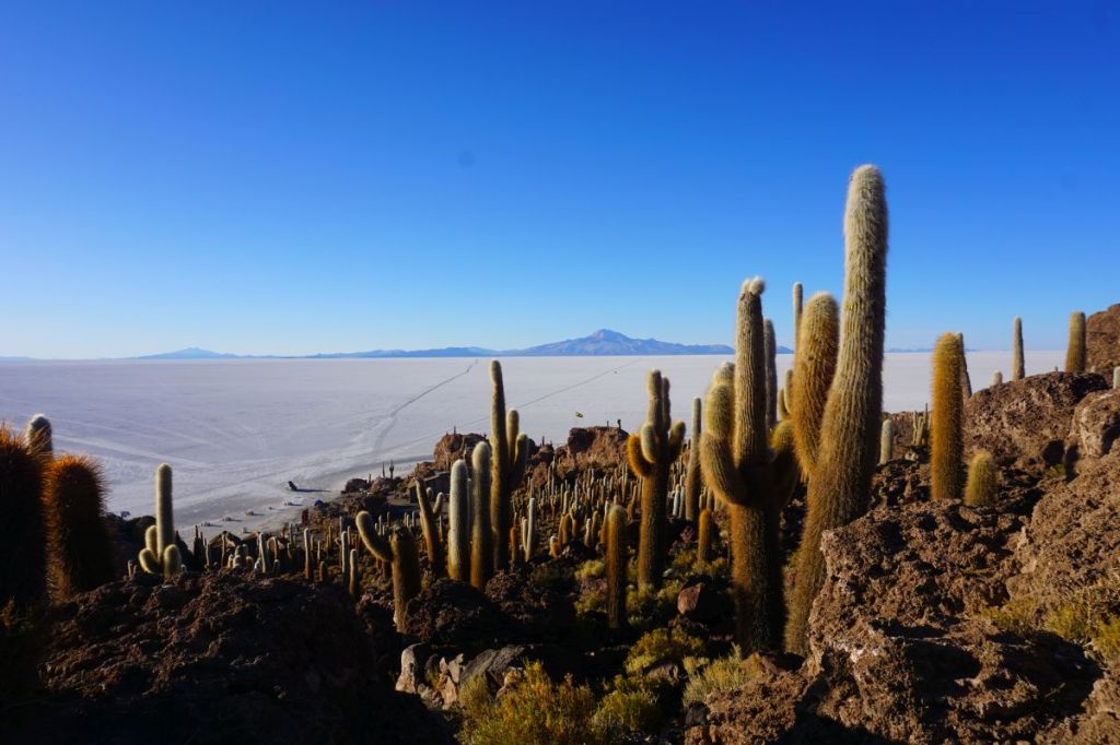 Luego nos vamos a la Isla Incahuasi que significa la casa del inca. Se encuentra en el salar y es un montículo grande de tierra donde hay muchos cactus. Damos un paseo de una hora por la isla, está muy agradable, a mi me hacen una entrevista unos chicos que están estudiando cómo mejorar el turismo en Bolivia.