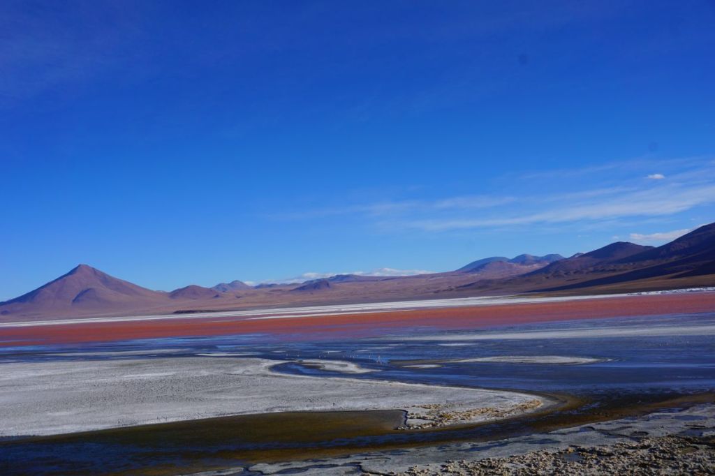 Por último nos adentramos en el parque de Eduardo Avaroa, pagamos la entrada al parque y vemos la Laguna Colorada que está muy bonita.