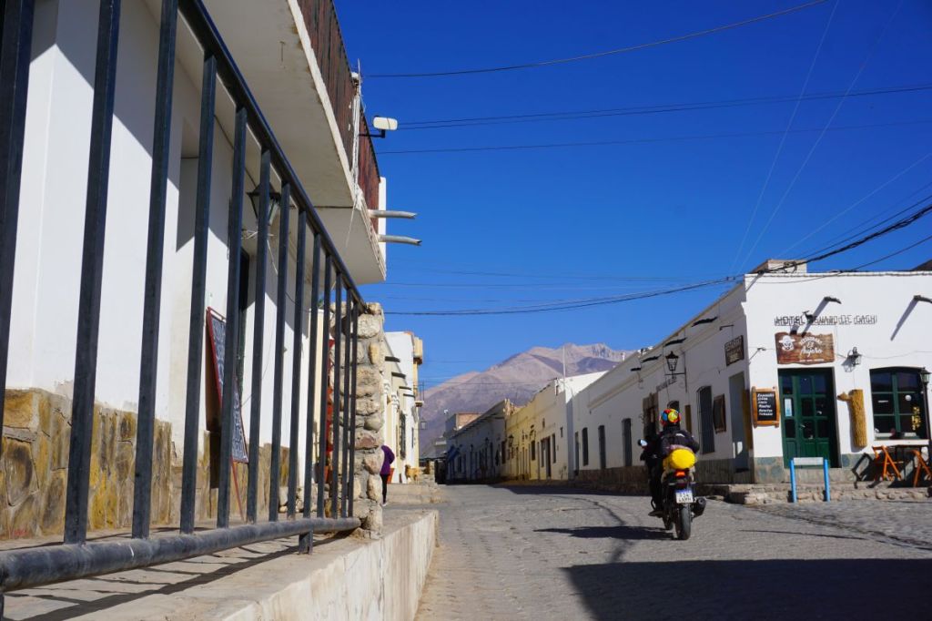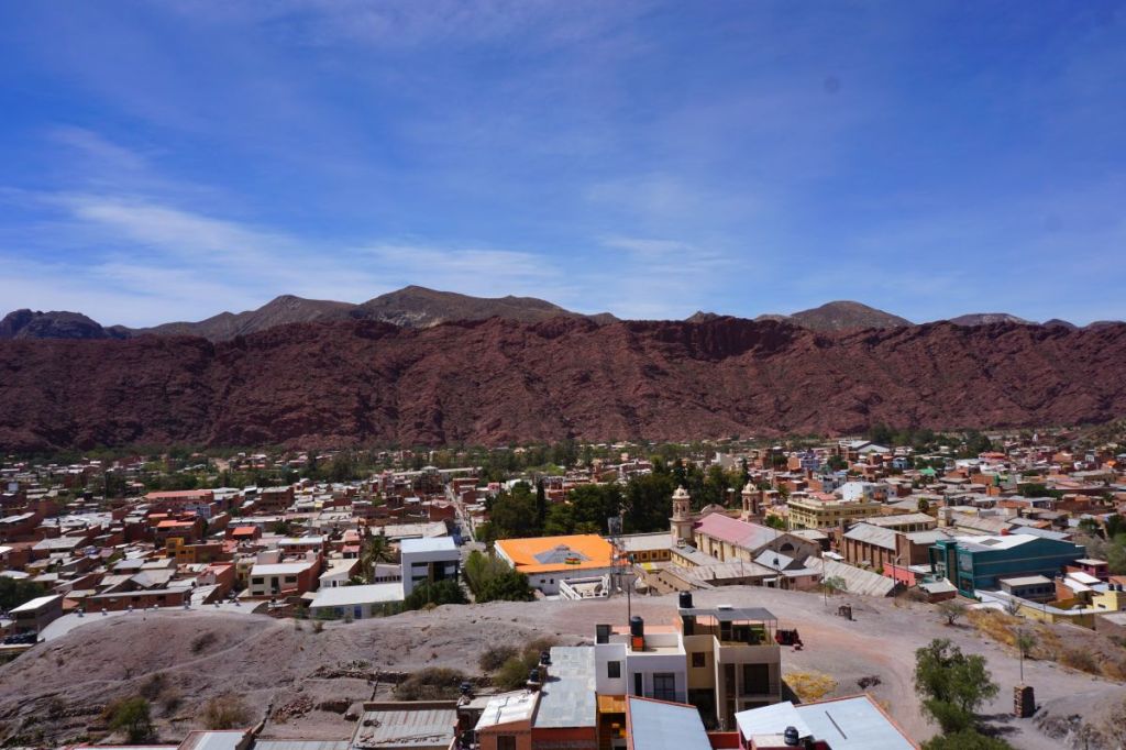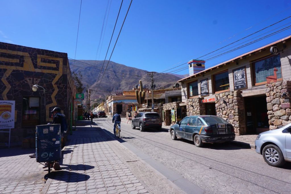 Una vez pasamos al lado argentino, a la localidad de la Quiaca, nos vamos andando hasta la estación del bus, que también es un buena pateada con las mochilas. La Quiaca vemos que tiene menos vida, muchos establecimientos cerrados y cuando llegamos a la estación nos llevamos una sorpresa, y es que en esta zona es una hora más con respecto a Bolivia. Creíamos haber llegado a las 16:00, pero son las 17:00 y todavía sin comer! En la propia estación cambiamos euros por pesos con el cambio de la calle a 260 pesos el euro (casi el doble que el oficial). El bus hasta nuestro siguiente destino es bastante barato pero no nos cuadra el horario, ya que sale en unos minutos y queríamos comer algo. Comimos un almuerzo tipo boliviano en un bar cercano: milanesa de pollo. Al final contratamos a un argentino por 8000 pesos que nos lleva en coche a nuestro siguiente destino: Humahuaca.