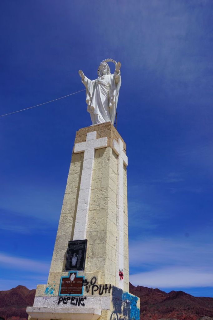 Mientras paseamos por la ciudad de Tupiza, que nos resulta un lugar muy agradable y con muchas zonas verdes. Subimos a un mirador que es un Vía Crucis con un Jesús en lo alto. Hay buenas vistas de la ciudad desde este mirador.
