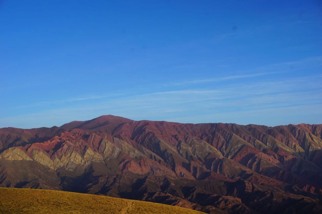 A las 17:00 tenemos reservada nuestra visita al Cerro de los 14 colores de Hornacal, que cuesta 2000 pesos por persona. Nos abrigamos previamente ya que subiremos a unos 4000 metros de altura. Por el camino paramos en un mirador y luego cuando llegamos arriba tenemos 1 hora para disfrutar las vistas. Se baja por un camino hasta un punto que es lo máximo que nos podemos acercar al Cerro.