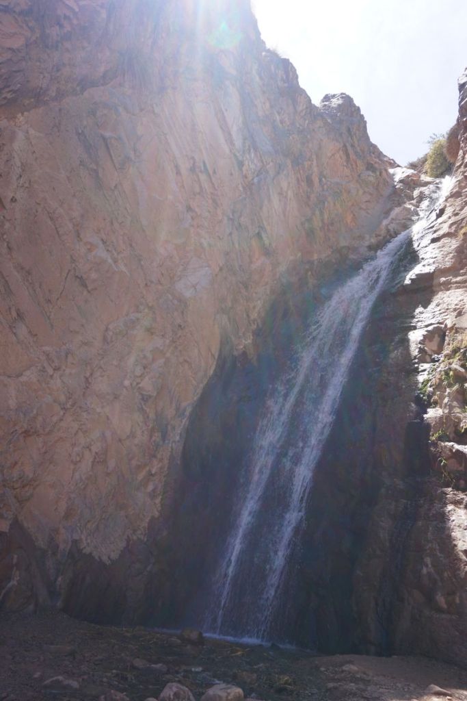 Desayunamos con los amigos que hicimos ayer. Nos despedimos de Fernando porque se tiene que ir, pero nos mantendremos en contacto con él porque nos va a ayudar a alquilar un coche. Volvemos a comprar las tortas rellenas y vamos a visitar La Garganta del Diablo. Son unos 12km ida y vuelta. El paisaje es muy bonito. Cuando llegas a la garganta hay que pagar 150 pesos por persona. De ahí bajas por un camino para ver la garganta, y luego se va siguiendo el río hasta llegar a la cascada. Es un paseo muy agradable. Comemos en la cascada y regresamos al hotel.