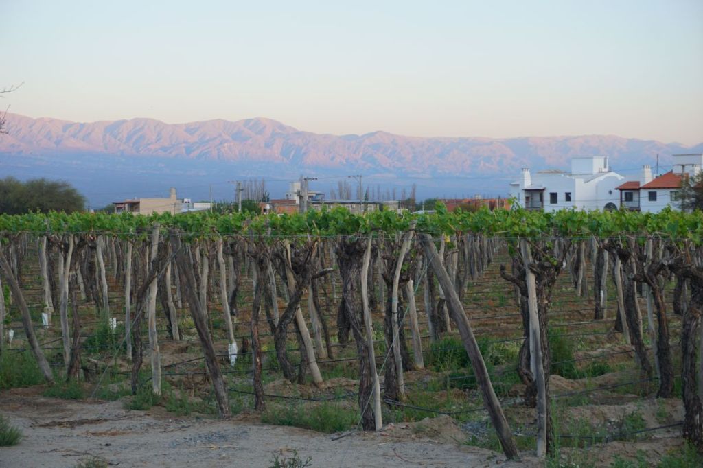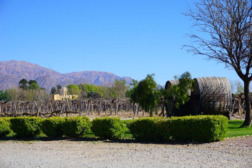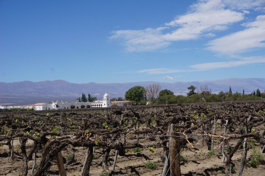 Primero nos enseña el viñedo. A nosotros nos llama la atención la altura de las vides comparadas con las que tenemos en La Rioja. En esta zona la uva predominante es la Malbec para tintos y Torrontés para blancos. Aquí llueve poco y tienen sistema de riego para aprovechar el agua al máximo. Lo que nos les falta es la exposición al sol. Utilizan para la fermentación tanques de aluminio para los vinos jóvenes, y para el resto usan roble francés o los huevos de concreto, en función del sabor que quieran conseguir. Vemos el sistema de producción que tienen dentro de la bodega y finalmente hacemos una cata de varios vinos, todos muy ricos. Probamos 5 diferentes, uno blanco y 4 tintos.