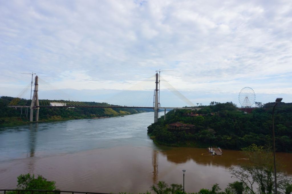 La primera parada es el punto donde confluyen 3 países: Paraguay, Brasil y Argentina. Se ve como se une el Río Paraná con el Río Iguazú. El 80% de las cataratas caen del lado argentino y el 20% del lado brasileño.