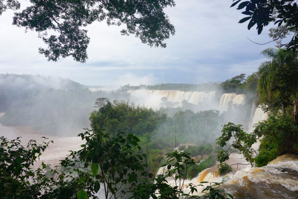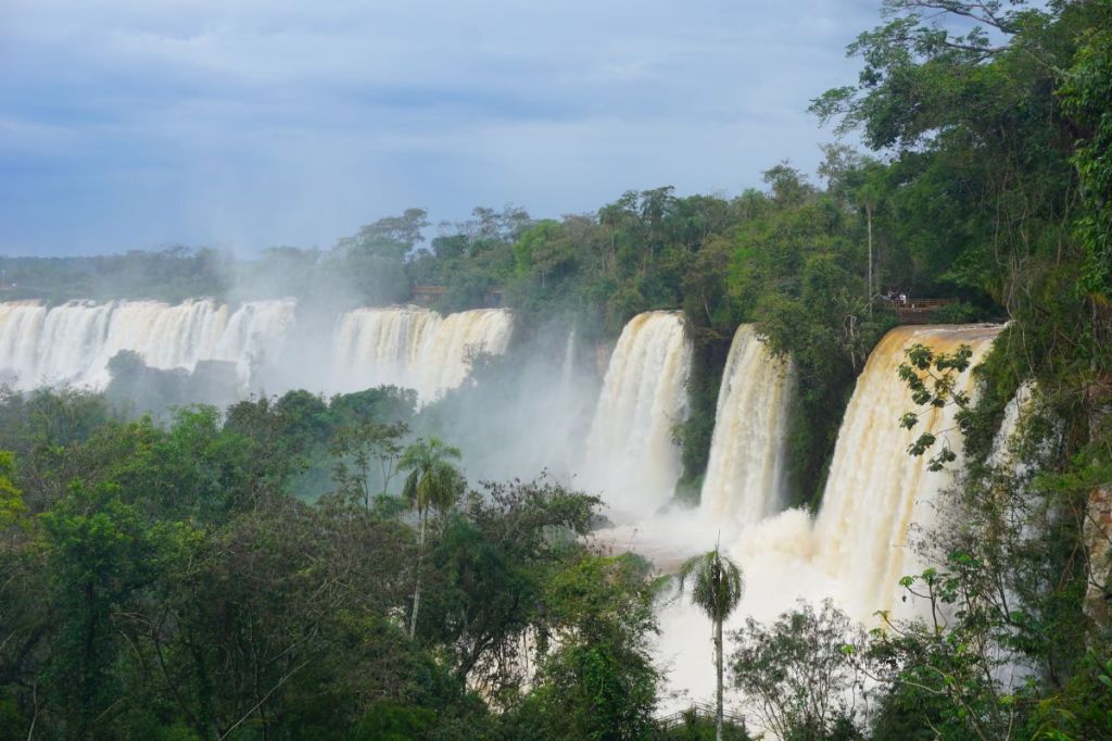 Luego se regresa al embarcadero, donde si quieres puedes comprar el vídeo que nos han sacado. Cuesta 3000 pesos. Subimos las escaleras, nos cambiamos rápido y cogemos el bus para regresar al punto de partida. Ahí nos juntamos con el grupo para hacer el Circuito Superior. En este tramo ya no te mojas, vas viendo las cascadas desde arriba y las vistas son espectaculares. Nos respeta la lluvia casi hasta el final, ya que cuando justamente estamos terminando el recorrido se pone a diluviar.