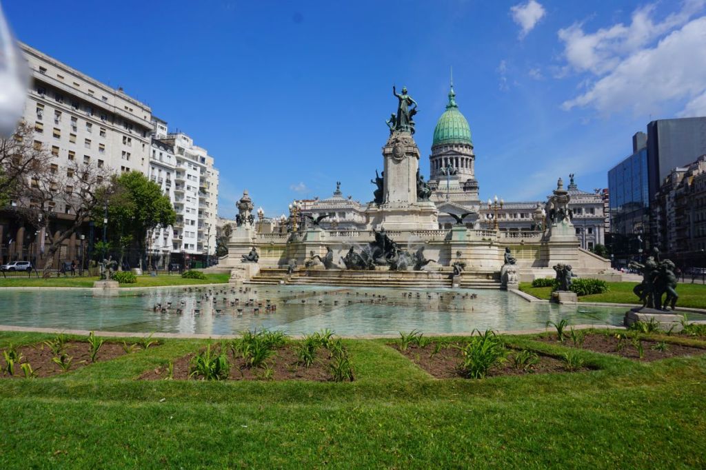 El Edificio del Congreso alberga las dos cámaras: el parlamento y el Senado. Fue construido por un italiano y resulta un edificio imponente. Frente a él se encuentra una zona ajardinada y hay un monumento recién restaurado. Es un homenaje a dos congresos que se produjeron unos años antes de alcanzar la independencia. El agua representa el mar de plata y los personajes que vierten agua con unas tinajas son dos afluentes del mar de plata, el Paraná y el Uruguay.