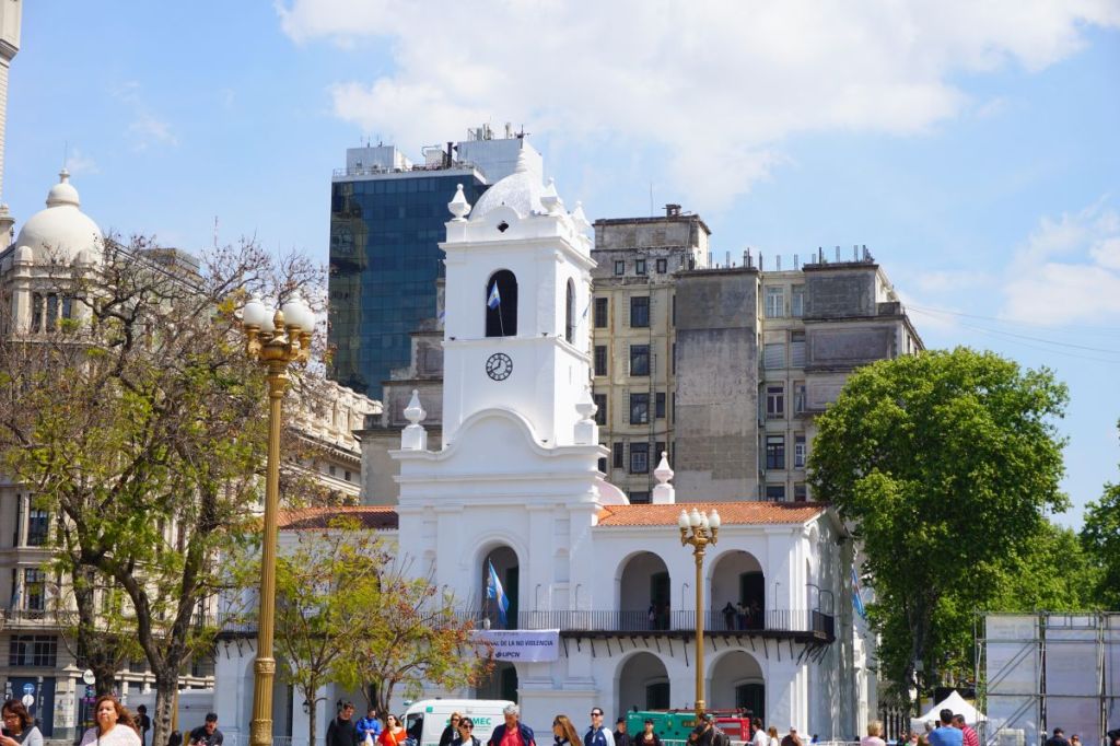 En el centro hay un monumento y alrededor de él se juntaban Las Mujeres de la Plaza de Mayo. Eran madres, abuelas, hermanas, de personas desaparecidas durante la dictadura. En aquella época estaba prohibido juntarse más de 7 personas y te podían detener por ello. Parte evitar eso ellas estaban todo el rato caminando alrededor de monumento ligeramente separadas para que no pudieran decir que estaban en grupos.