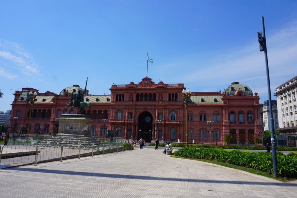 En la misma plaza se encuentra La Casa Rosada que en la actualidad es la casa presidencial. Si el presidente está dentro hay una pequeña bandera que lo indica. Inicialmente era de color de rosa porque se recubría con cal y sangre de ganado para hacerla impermeable. Ahora simplemente mantienen el color por tradición.