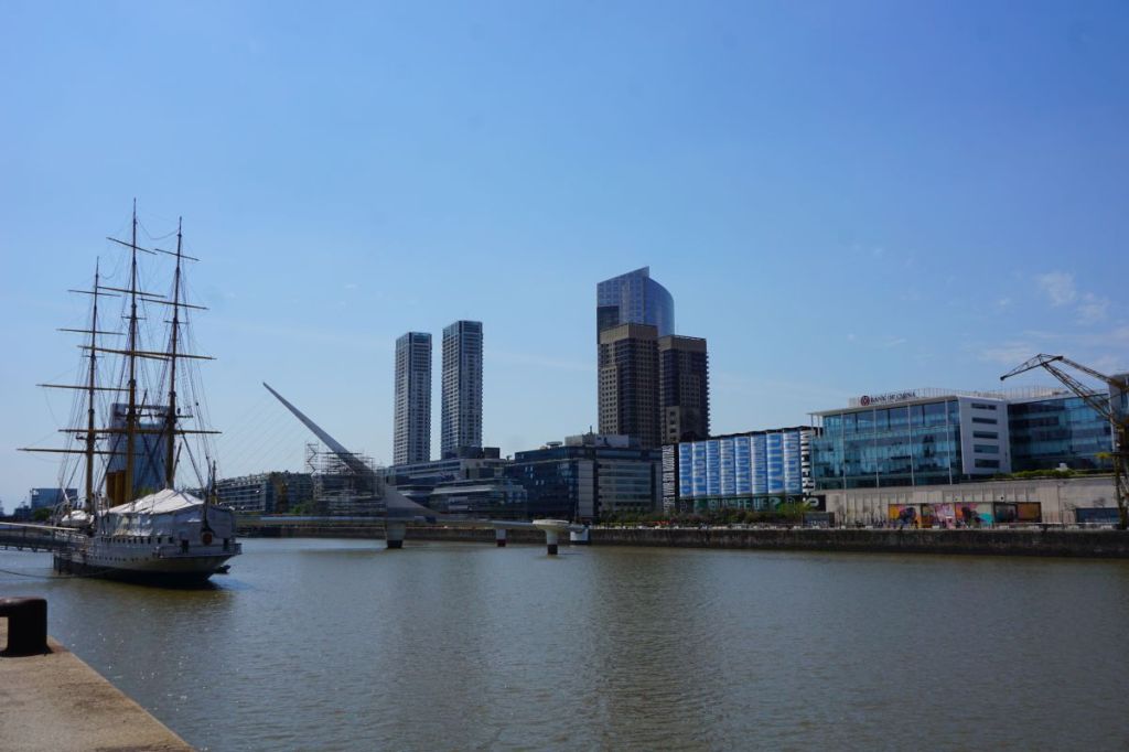 Aquí acaba el tour de unas dos horas y nos dirigimos hacia Puerto Madero dando un paseo de una media hora. Es un lugar recomendado para la hora del almuerzo. Aquí conviven edificios modernos y oficinas de lujo con la historia del antiguo puerto de Buenos Aires. Comemos en el Restaurante Mare en la terraza con vistas al río. Aprovechamos para comer algo de pescado, yo elijo tartar de Salmón y está todo muy rico.