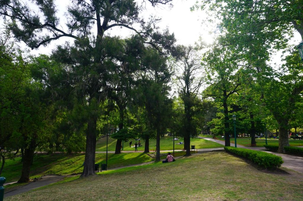 Nos han recomendado ver el mercado y aprovechamos para comer allí: locro, sopa, carne y pollo. Nos vamos hasta un gran parque que hay en la ciudad. Tiene unas palmeras enormes de altas y está muy agradable.