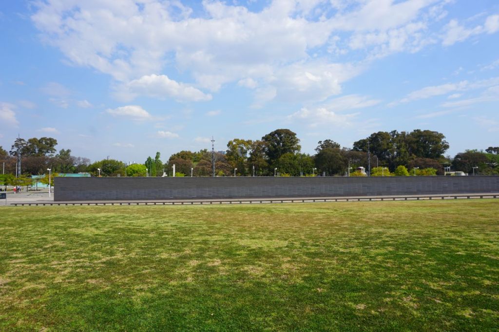 Como este barrio está muy cerca del Río de la Plata nos acercamos a verlo. Nos cuesta un poco llegar hasta la zona donde ya divisamos el río. Nos encontramos con el Parque de la Memoria, que es un monumento a las Victimas del Terrorismo de Estado. En varios muros aparecen inscritos los nombres de todos los desaparecidos y asesinados por el estado represivo de la dictadura Argentina.