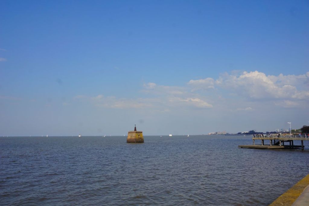 Hace un día de sol muy agradable y vamos dando un paseo por la rivera del Río de la Plata hasta nuestro hotel (una buena pateada de unos 10 o 12 kilómetros). Es domingo y la gente esta disfrutando en familia de este día por los jardines cercanos a la rivera con sillas de playa, neveras con comida y bebida, pescando…