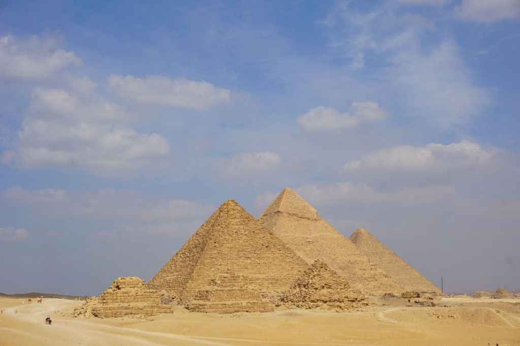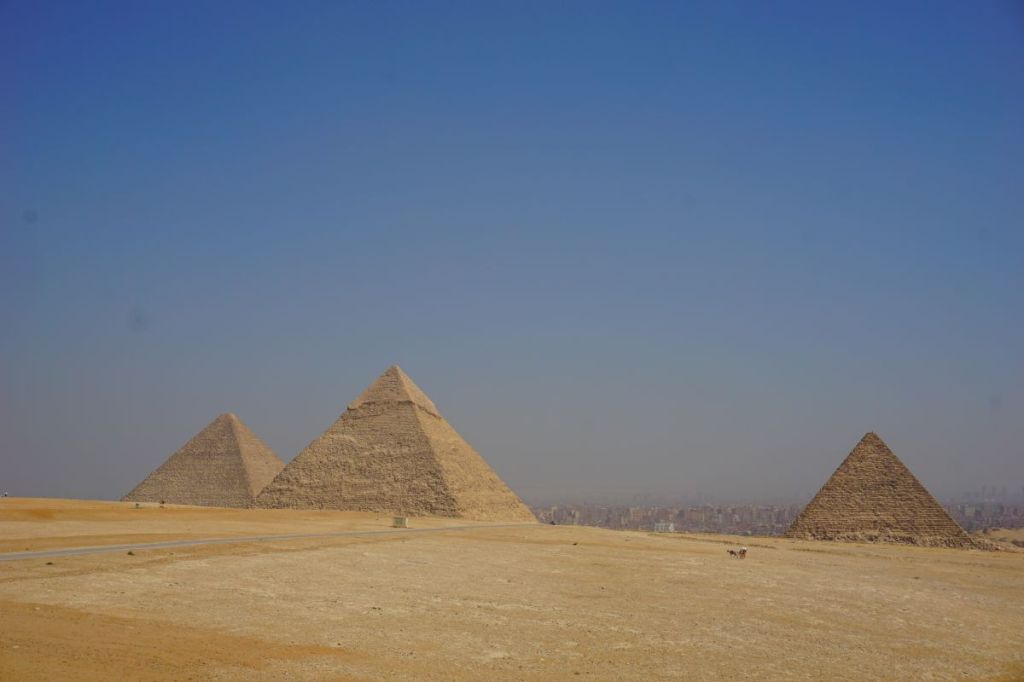 Cerca de la Gran Pirámide hay algunos edificios y tumbas que visitamos. Vamos andando desde Keops hasta Kefren y hasta Micenos y nos dirigimos al mirador donde van los turistas en camellos para sacar la foto de las 3 pirámides alineadas. Luego vamos hasta otro mirador en el que hay un bar pero solo se entra con reserva, así que cerramos el circulo volviendo a la esfinge. En total estamos unas 4 horas.