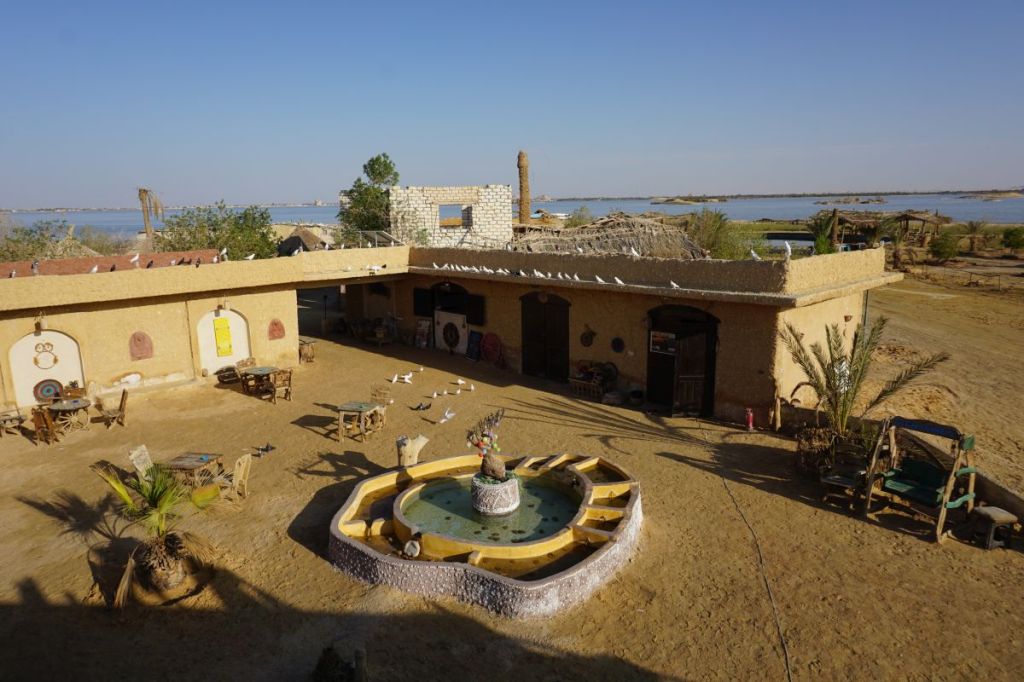 Hoy tenemos el día libre hasta las 15:00 que empieza el safari 4×4. Nos pasamos la mañana entre darnos baños en el lago salado y la poza dulce del hotel. Esta parte del viaje está siendo un remanso de paz y tranquilidad tras la locura del El Cairo y lo estamos disfrutando. Tambien alquilamos un par de kayak. Vamos hasta la isla más cercana a nuestro hotel y la visitamos. Tiene sillas, mesas y edificios de adobe semi reduidos. Es una isla a donde llevan a turistas para ver el atardecer. Continuamos con el kayak hasta otra isla más lejana, la rodeamos y volvemos.