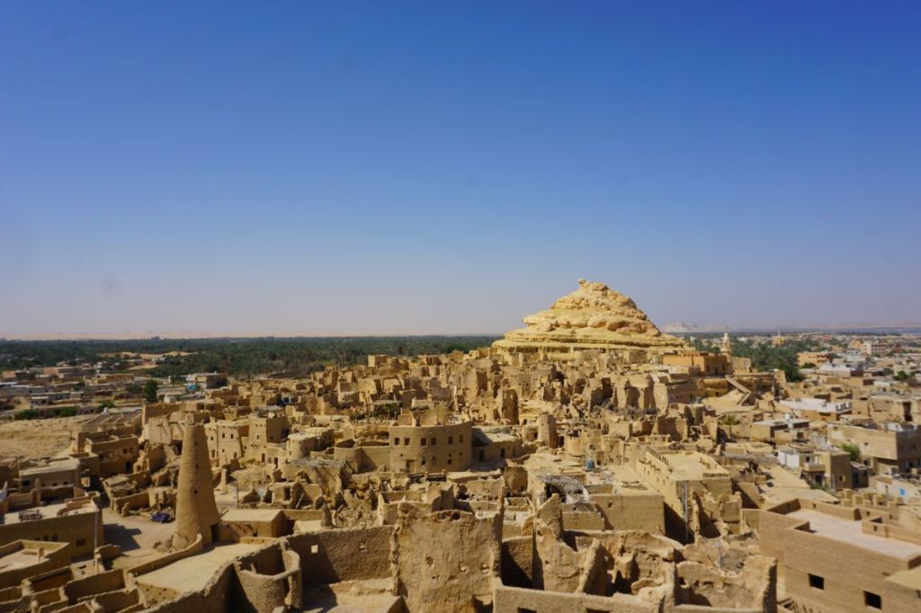 Desayunamos a las 9:00 un gran desayuno, ensalada con queso, alubias, quesitos, dos huevos duros o una tortilla, pan de pita, café, pan de leva y mermelada… Hoy ya no nos hace falta comer! Nos viene un taxi a recoger y nos deja en el centro de Siwa. Primeramente visitamos La Fortaleza de Shali, que es la antigua ciudad de Siwa que estaba construida totalmente en adobe, pero que quedó destruida en el año 1926 porque llovió durante 3 días seguidos, algo muy inusual en este paraje. Algunos lugareños están intentando recuperar algunas de construcciones. En lo más alto hay buenas vistas.