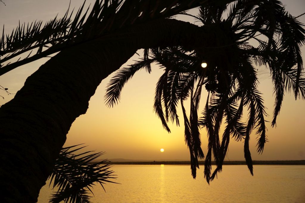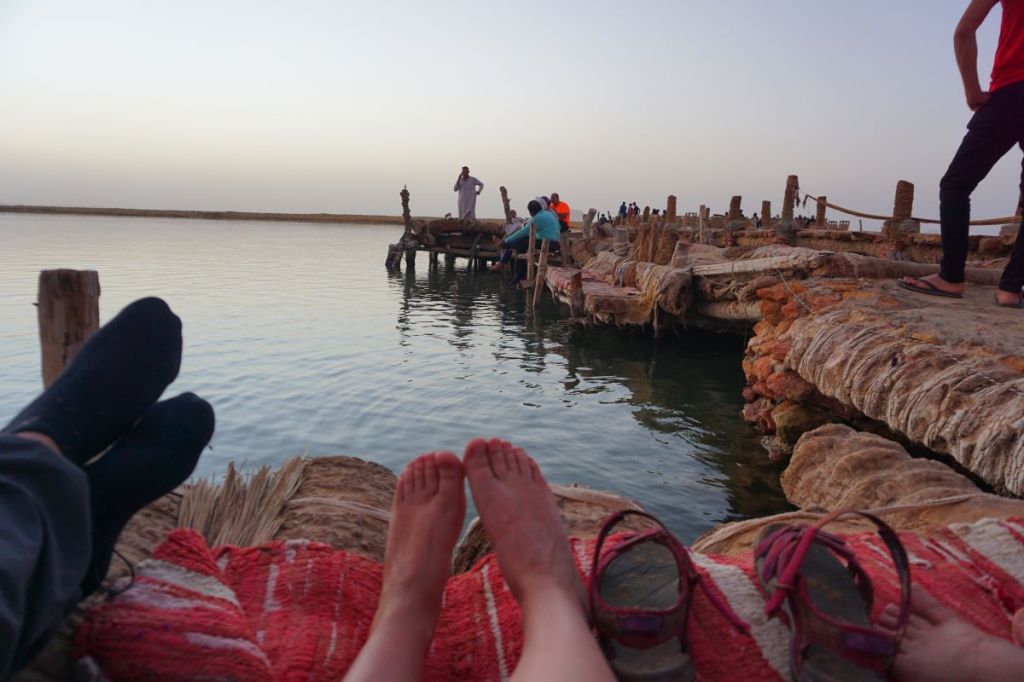 Se acerca la hora del atardecer que hoy vamos a ver desde un sitio muy recomendable para ello, la Isla de Fatna. Primero nos damos un baño en una poza de agua dulce para quitarnos la sal que tenemos por todo el cuerpo que se encuentra en la entrada de la misma Fatna. Hay mucha gente que está en este mismo sitio para ver el atardecer. Estamos un rato tranquilos disfrutando del atardecer.