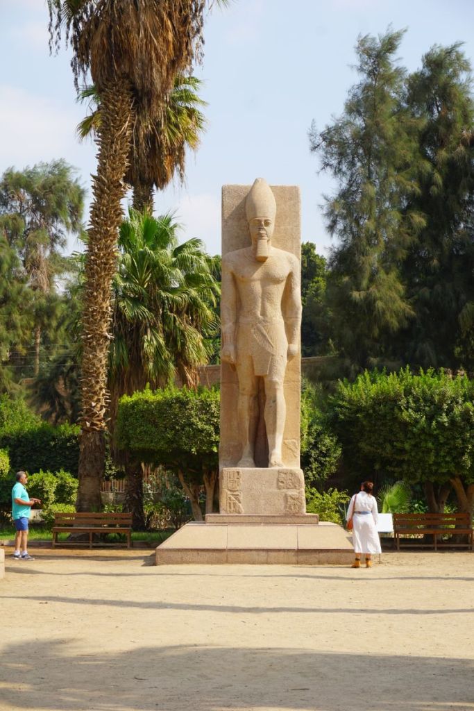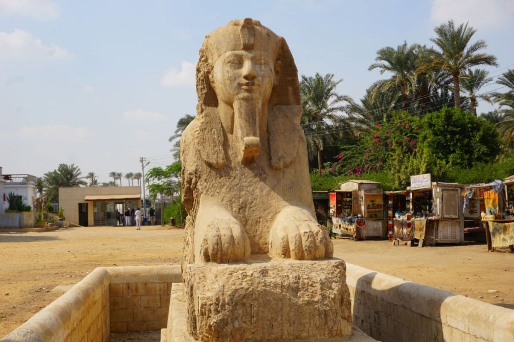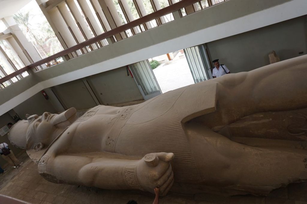 Dejamos Dashur y nos vamos para Menfis, antigua capital de Egipto. Vemos el museo exterior, la pieza más importante es un trozo de una enorme estatua de Ramsés, también hay alguna escultura de una de sus muchas mujeres, Nefertari, considerada la más importante de todas ellas. Hay un puesto donde un señor vende pequeñas piezas originales de la época de los faraones, son piezas que la gente de encuentra en sus casas y las venden en vez de darlas al estado que no tiene controles para que esto no ocurra.