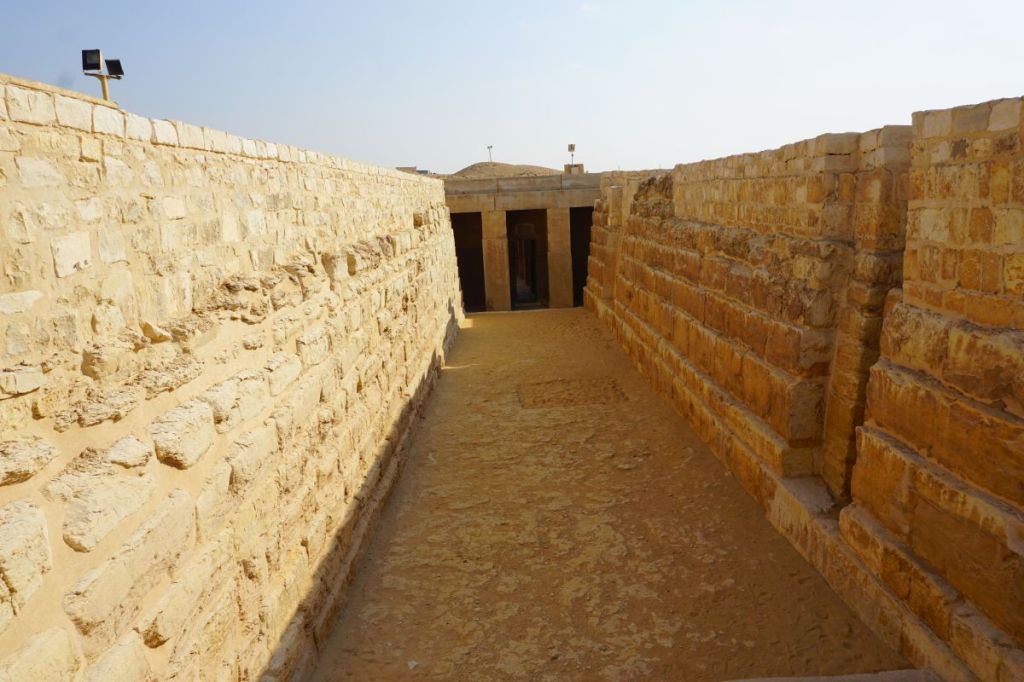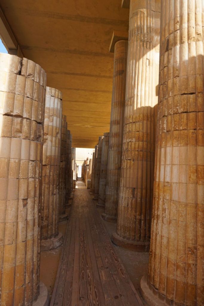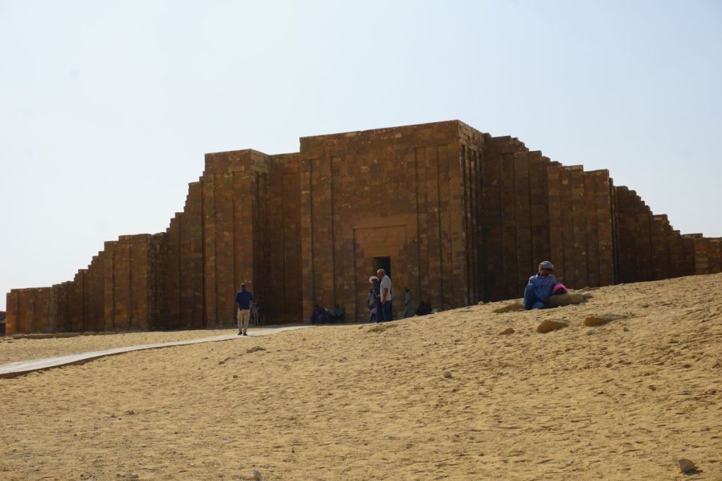 Vemos la Piramide Escalonada, en cada escalón hay una mastaba. Se puede entrar dentro pero en esta ocasión no hay que subir ni bajar, es un camino llano de columnas que desemboca en un pozo enorme de profundo, al fondo solo se puede accede con permisos.