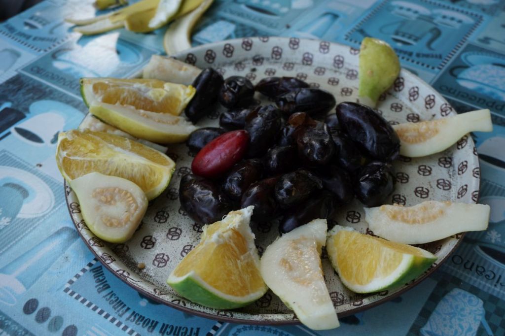 Tras el baño Mohamed ha sacado una alfombra para sentarnos y nos ha preparado el té y un aperitivo de dátiles, pipas y cacahuetes.