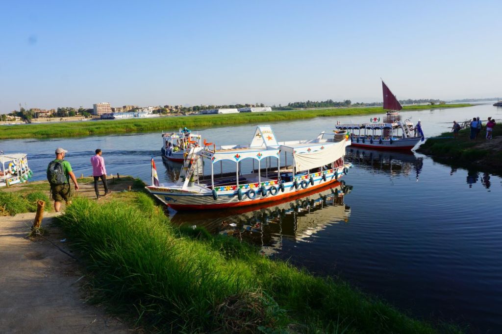 Nos traen desayuno en el tren, otra vez un montón de bollería. Llegamos a las 6:30 a Luxor donde nos está esperando Alaedine, nuestro contacto del crucero en luxor. Nos cobra 15 dólares por el traslado de los 4. Nos alojamos en el Hotel Pyramisa, está genial. Mientras nos preparan la habitación preparamos con Alaedine nuestra estancia en Luxor. Aquí empieza la parte del viaje en el que vamos a estar más controlados y con menos capacidad de ir a nuetro aire.Nos pasamos la mañana en la piscina y a las 13:00 viene Alaedine a buscarnos. Desde el propio embarcadero del hotel cruzamos el Nilo en un barco taxi hasta la orilla oeste. Comemos en un restaurante lo mismo de siempre humus, verduras crudas y cocinadas, arroz y sawerma de pollo y ternera.