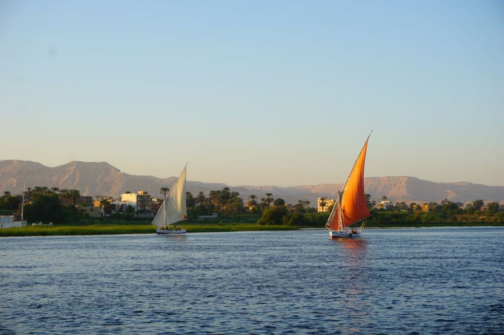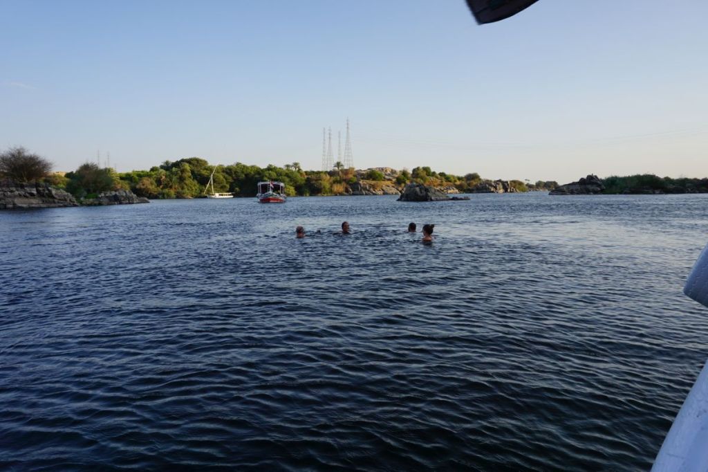 Volvemos a coger el barco taxi y nos lleva a una zona que parece como una mini playa y nos bañamos en el Nilo. El agua es muy transparente y el fondo es de arena. Tiene mucha corriente pero cubre muy poco. Vemos el atardecer desde el barco y regresamos al hotel que mañana madrugamos para la excursión en globo.