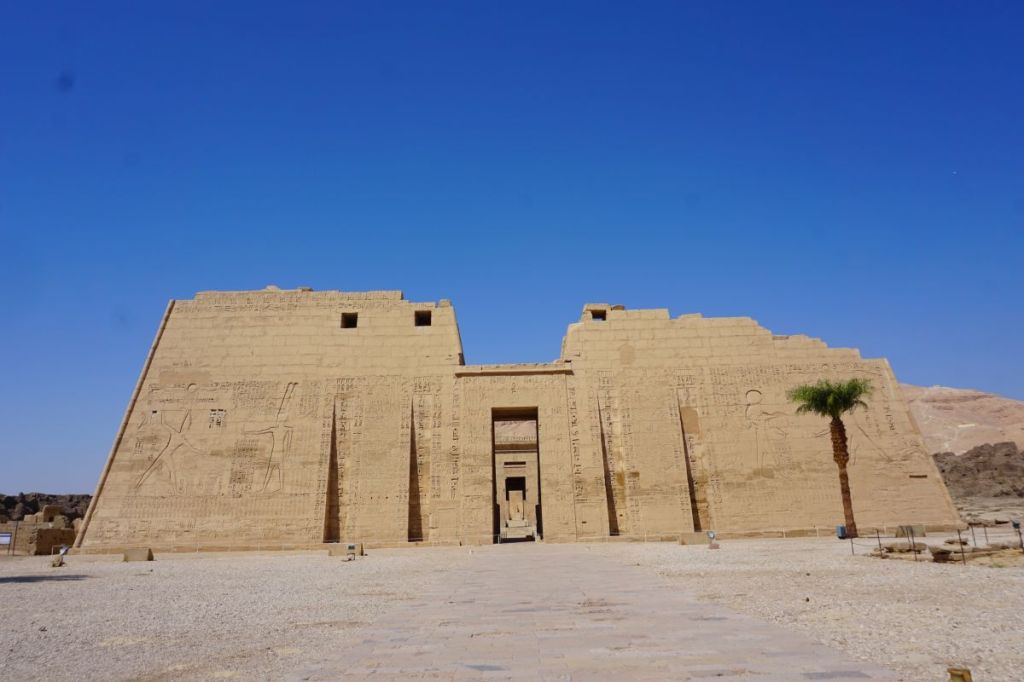 Nuestra segunda visita del día es el Templo de Medinat Habu que está muy bonito, tiene un bar al lado y a la salida paramos a tomar algo e ir al baño, para estar cerca de un templo es un sitio barato.