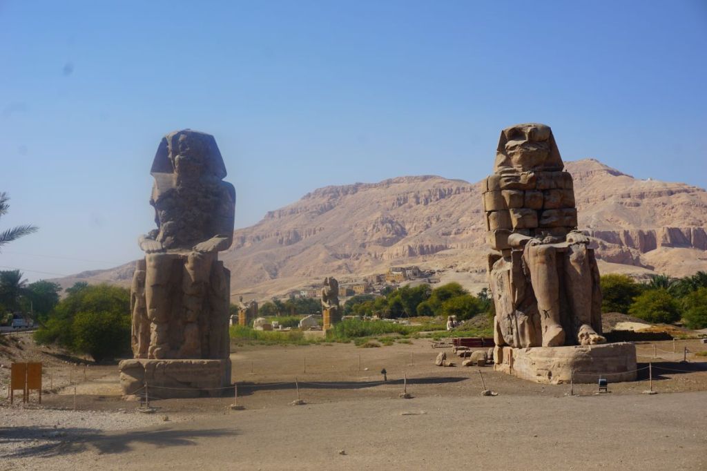 La tercera visita es la de las Tumbas de los Artesanos donde visitamos dos de ellas: Sennutem e Inherkha. Éstas son mas pequeñas pero igualmente bonitas. Luego paramos en los Colosos de Memmon. Finalmente vamos a una fábrica de alabastro. Nos enseñan cómo se trabaja este material y te enseñan su tienda. Tienen cosas muy bonitas pero todavía nos queda viaje para ir cargados.
