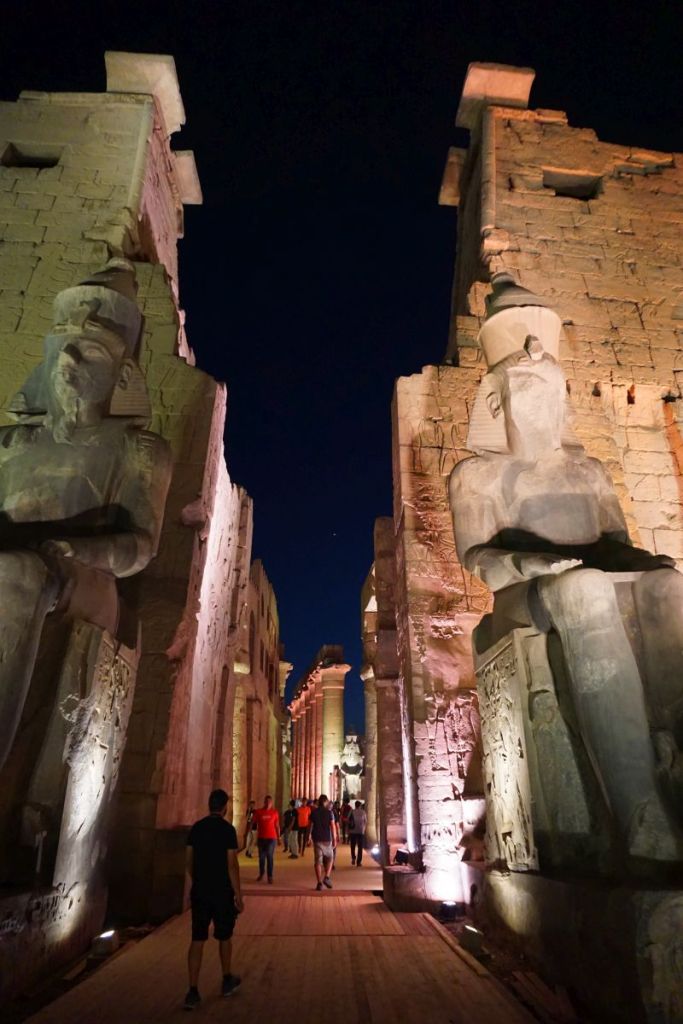 Después, cuando ya está atardeciendo, vamos al Templo de Luxor. Es similar pero más pequeño y merece mucho la pena verlo entre el atardecer y la noche por la iluminación. Terminamos para las 19:00 y nos vamos con el guía a tomar un té y zumo de limón en el Donwtown de Luxor.