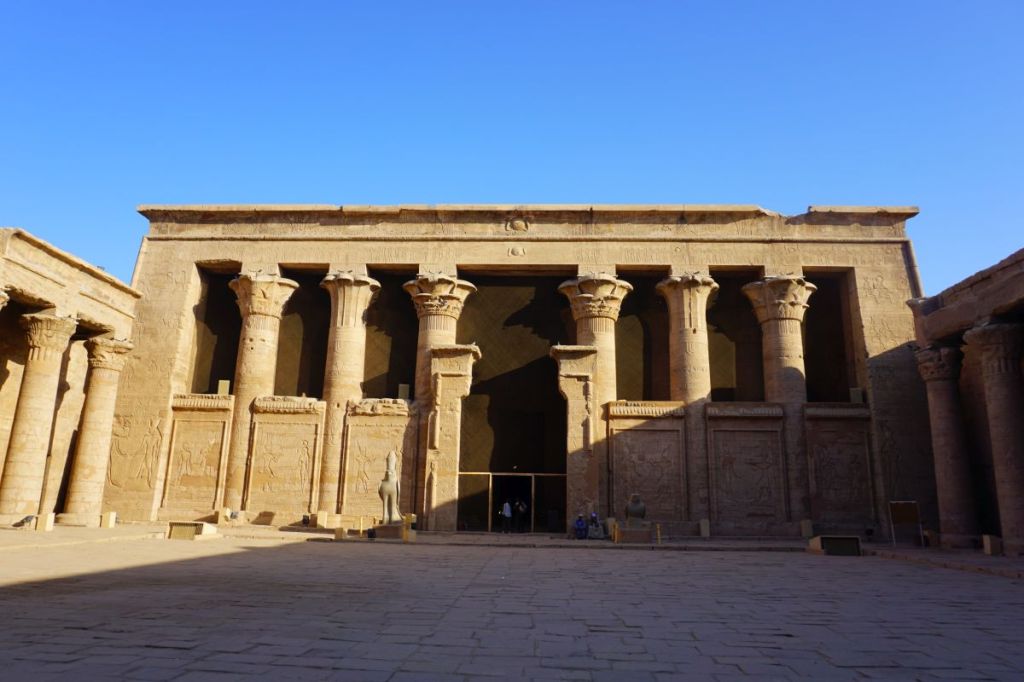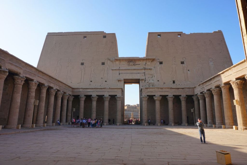 Volvemos a salir temprano y vamos a ver el Templo de Edfu. Este está muy bien conservado especialmente la fachada que está intacta y parte de la muralla interior. Es muy parecido a Karnak, pero más pequeño. Regresamos pronto al barco ya que zarpa sobre las 9:00 o las 10:00.